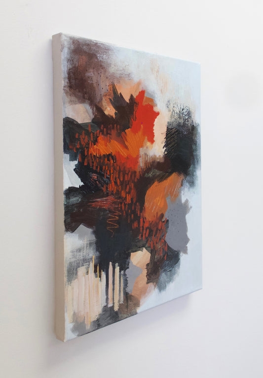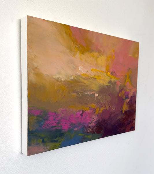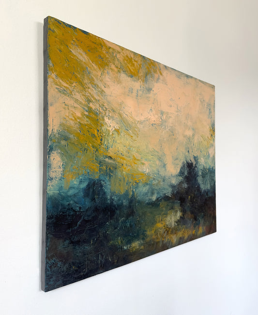 Influenced by the airy expressions of feeling in my more representational works, creating these pieces is a way of broadening my painting methods. I work with elements of colour, shape and composition that are also drawn from nature, but in a different form. Abstraction offers a freedom in the personal connection that viewers make with the art.