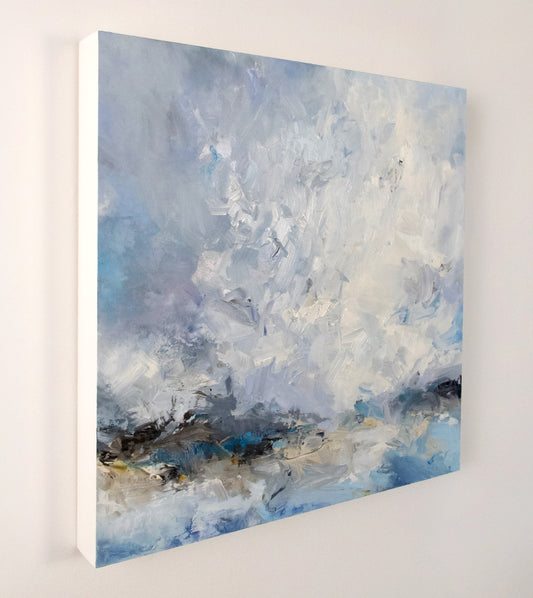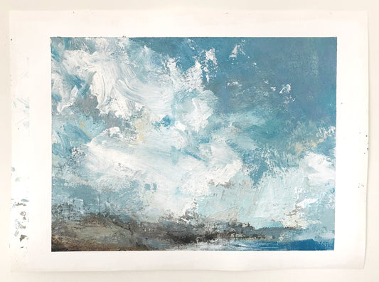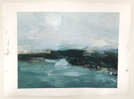 The landscape acts as a framework for emotional experiences, captured through weather, plants, and other natural elements. Paint is applied with brushes, knives, and other tools to build textured layers and subtle tonal variations.