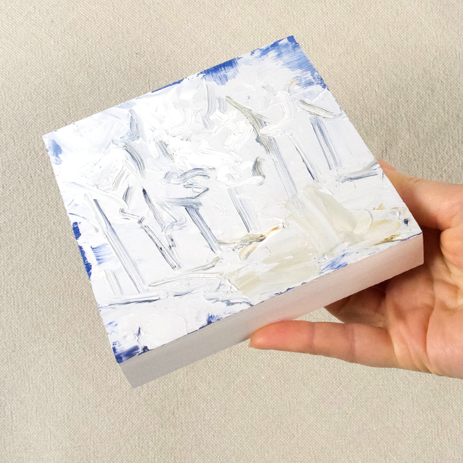 These little paintings are so small that they do not need a wire to hang. The panels are cradled and very light, so they can just sit on a nail or a pair of thumbtacks.