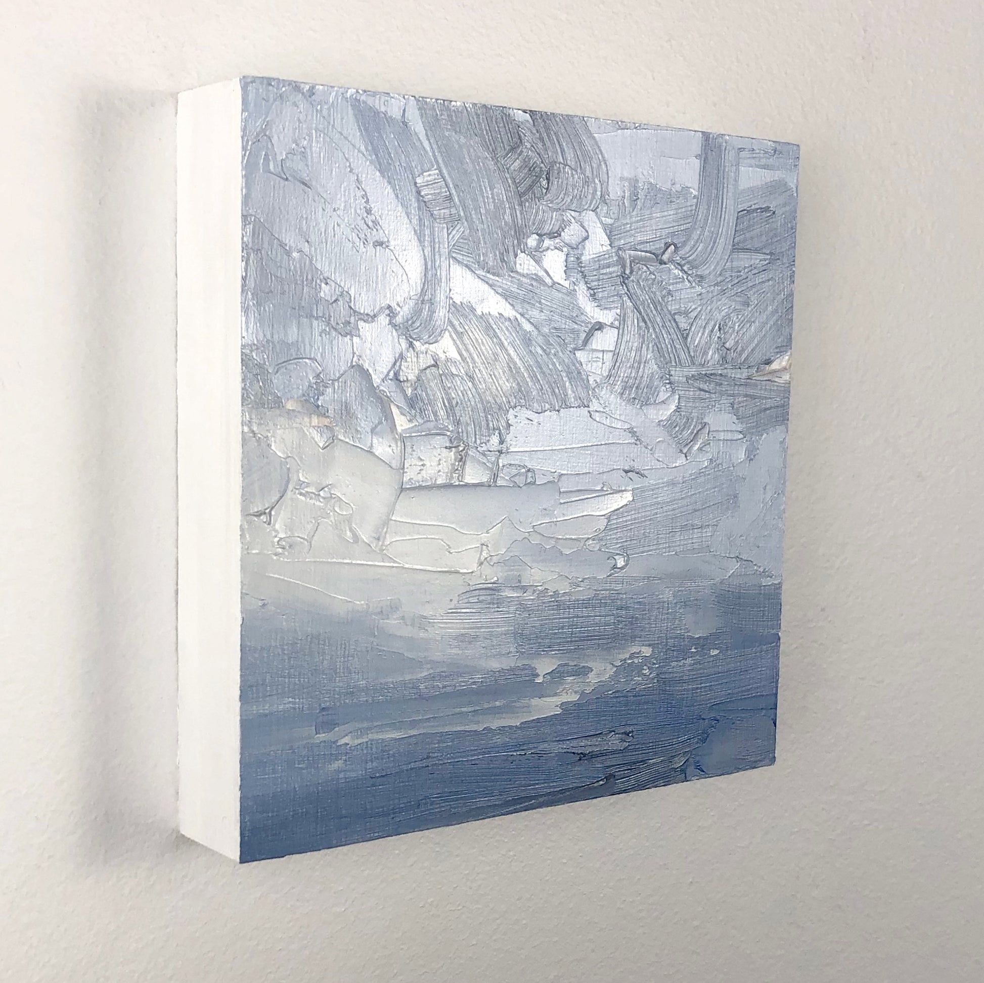These little paintings are so small that they do not need a wire to hang. The panels are cradled and very light, so they can just sit on a nail or a pair of thumbtacks.