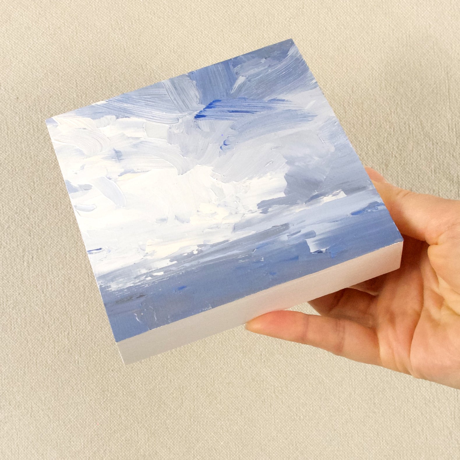 These little paintings are so small that they do not need a wire to hang. The panels are cradled and very light, so they can just sit on a nail or a pair of thumbtacks.